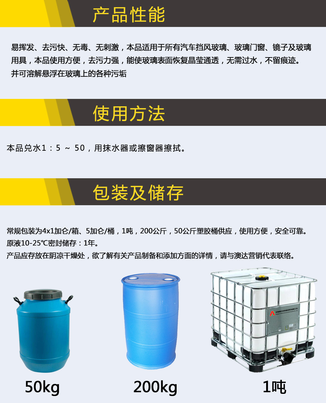 易揮發(fā)、去污快、無毒、無刺激,本品適用于所有汽車擋風(fēng)玻璃、玻璃門窗、鏡子及玻璃用具,本品使用方便,去污力強,能使玻璃表面恢復(fù)晶瑩通透,無需過水,不留痕跡。并可溶解懸浮在玻璃上的各種污垢。