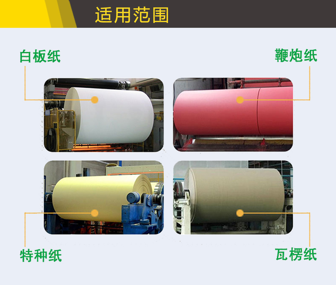 使用范圍:用于中高檔衛(wèi)生紙、輕型紙、印花紙、鋁薄襯紙、鞭炮紙、紗管紙、高檔包裝紙。